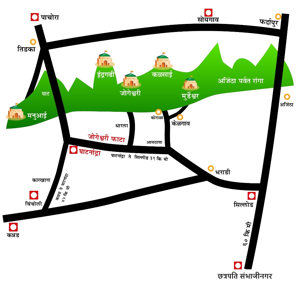 श्री जोगेश्वरी मातेच्या दर्शनासाठी येणाऱ्या भाविकांना मार्गदर्शक नकाशा: